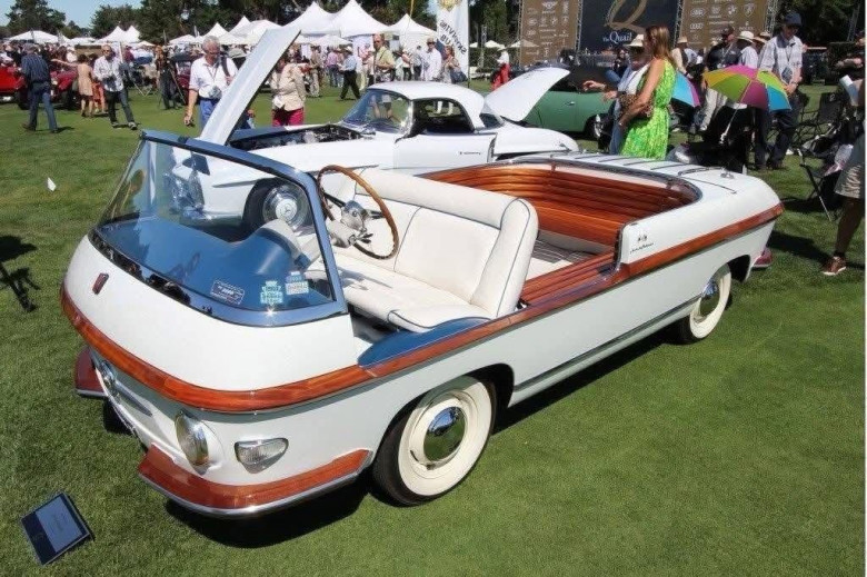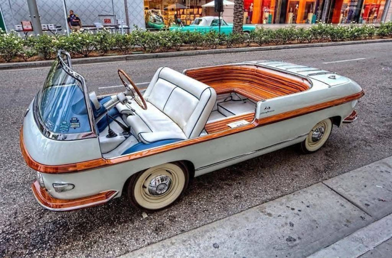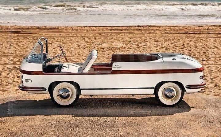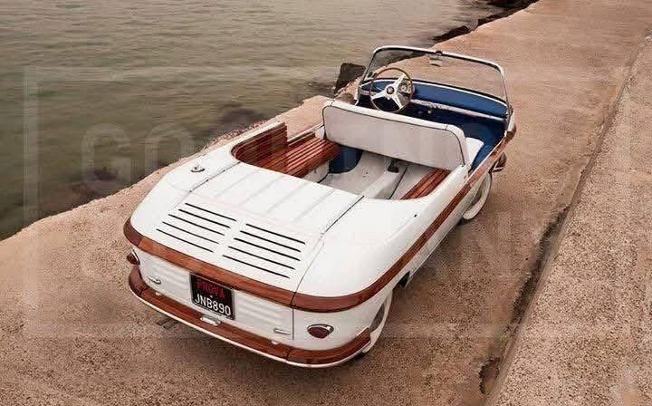 A rolling work of art with the spirit of the Mediterranean lifestyle. Based on the compact Fiat 600 Multipla platform, Pinin Farina transformed the little microcar into a luxury seaside cruiser with bold, whimsical style. The most striking feature is the complete absence of doors, providing an open-air experience perfectly suited to the warm coastal climate. The body sports lush teak exterior trim that wraps around the car like varnished boat decking. Inside, the seating is crafted from rich mahogany wood, reimagined to resemble the elegant benches of a classic motorboat.