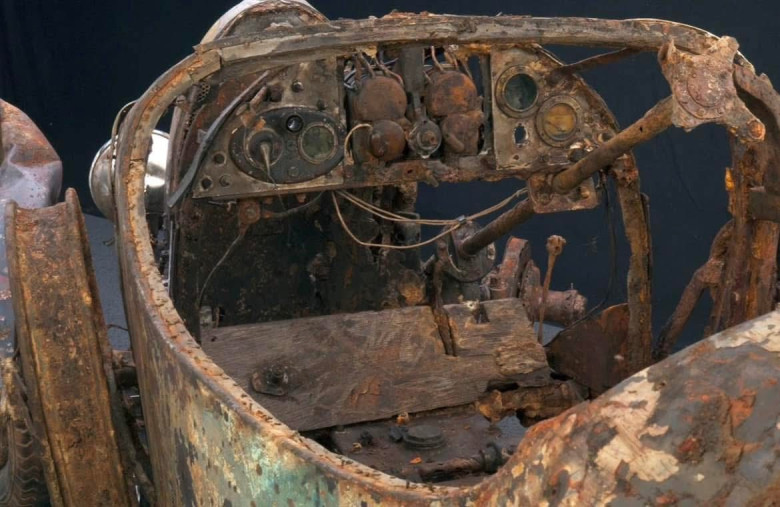This particular car's condition would charitably be described as requiring complete restoration, though that description fails to capture the magnitude of what 70 years underwater does to aluminum bodywork, steel chassis components, leather upholstery, and mechanical assemblies designed for precision engineering rather than aquatic environments.