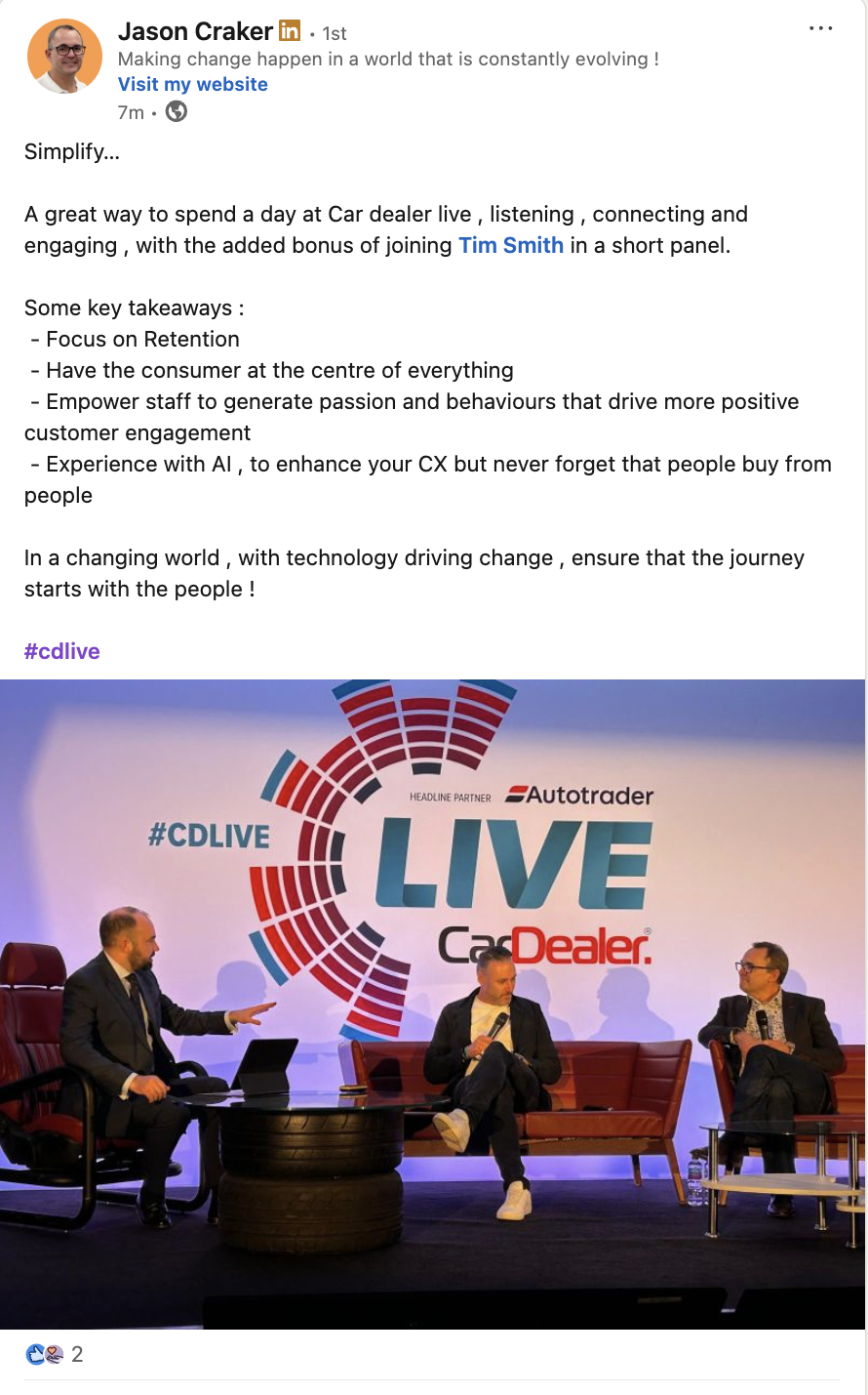 Those at the event can post on social media tagging Car Dealer or using #CDLive.