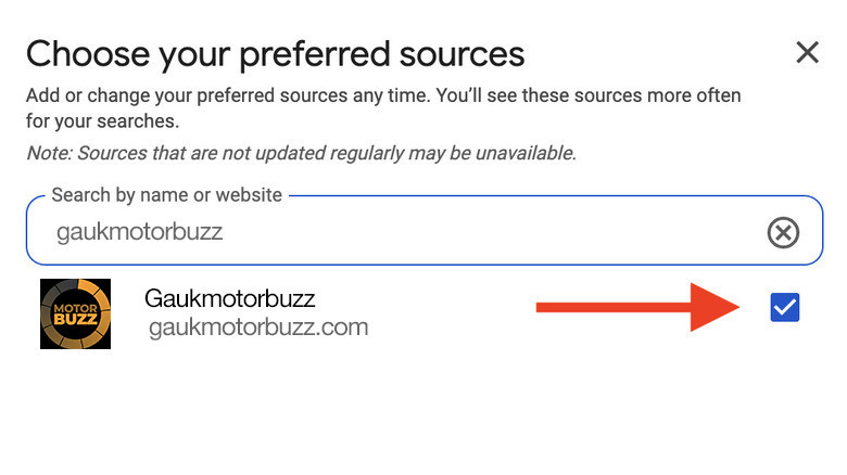 Or do it through any search: Fire up Google and look for car news, EV updates, or rally action — anything where you spot the "Top Stories" carousel. Tap that little stacked-pages icon at the top, type "gaukmotorbuzz.com," and select us. Boom — more of our real-talk coverage shows up first.