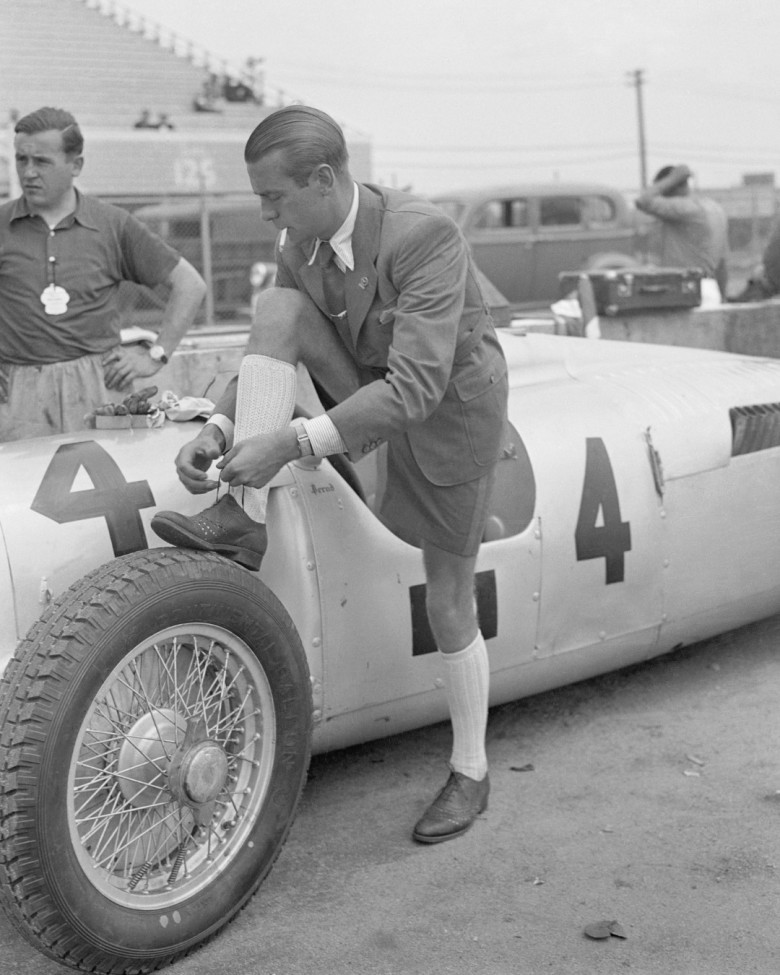 Off the track, Rosemeyer’s charismatic persona and relationship with famed aviatrix Elly Beinhorn made them one of Germany’s celebrated couples of the time. Unfortunately, Rosemeyer’s life and career ended abruptly in 1938 during a world speed record attempt on Germany’s autobahns, racing at over 270 mph when tragedy struck.