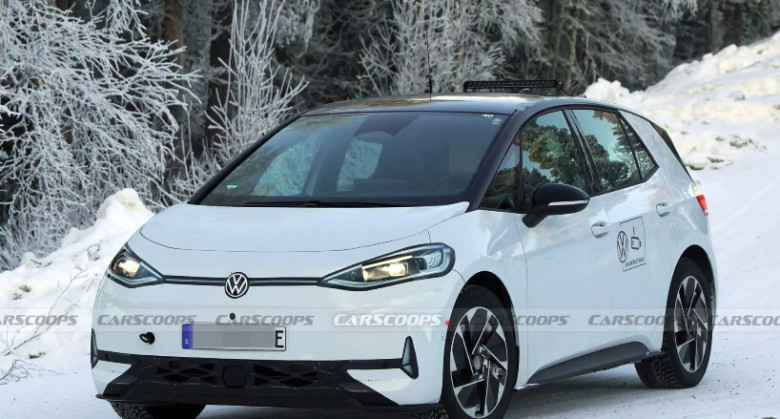 Our spy photographers spotted the revised ID.3 undergoing cold-weather testing, ahead of its expected debut in the second quarter of the year. As is often the case with Volkswagen prototypes, the tester wears cleverly applied camouflage to imitate the current model.